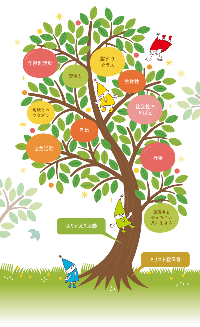 神から愛され、隣人と互いに愛し合うことで、心が豊かに養われるキリスト教保育を行います。