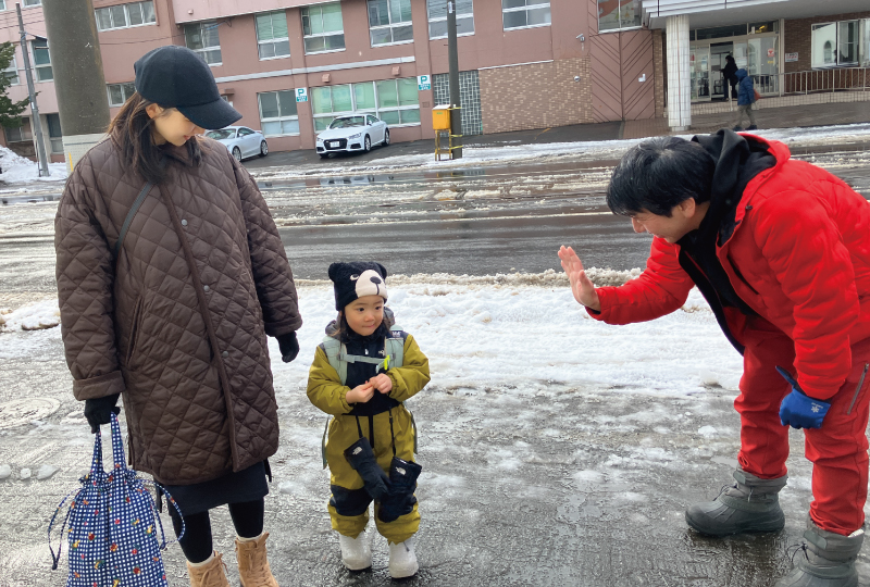 通園バスはありませんので、保護者の皆様に送り迎えをお願いしています。子どもと同じ景色を見ながらする何気ない会話は、子どもの成長や思いがつまっている大切な時間です。私たちも、保護者の皆様と直接やりとりをしながら、嬉しいことや悩んでいることなどを分かち合い、一緒に子どもたちの育ちを見守りたいと思っています。