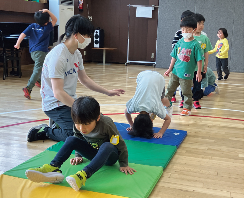 発達に応じた大切な育ちを育むために学年別での活動があります。外国人講師による、遊びながら身近に英語を感じられる「英語あそび」、体育専任講師による体力作りをねらいとしたマットあそびや鉄棒などを行う「体育あそび」があります。同年齢の集団でしか味わえない達成感や楽しさを共有しながら活動します。