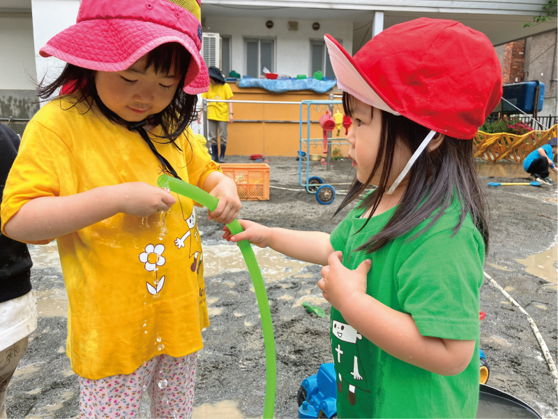 友だちや先生たちとかかわる中で、お互いが愛し、愛される存在であることを感じられる保育をしています。