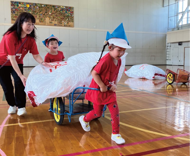 運動会、表現活動、お泊まり会、卒園式などは、毎年年長児が中心となりテーマを決めて創り上げていきます。教師主導ではない、子どもたちの想いや発想が形になっていく経験が心を大きく育てます。